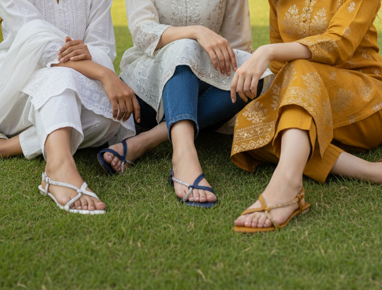 Colour Options: Bold (Red/Pink/Green) and Earthy (Brown/Mustard/Nude) Available Sizes: Standard flat sandal...